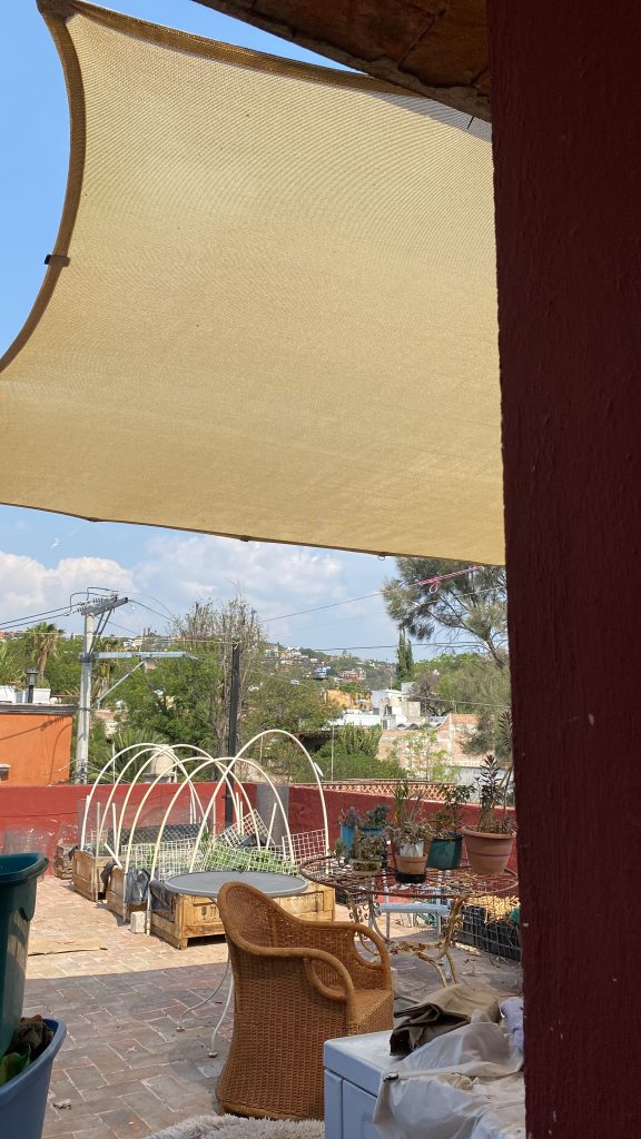 El lunes instalaron la red y la malla-sombra que compre para la terraza. Me siento muy contenta porque ahora mis animalitos tienen un mejor lugar para vivir.